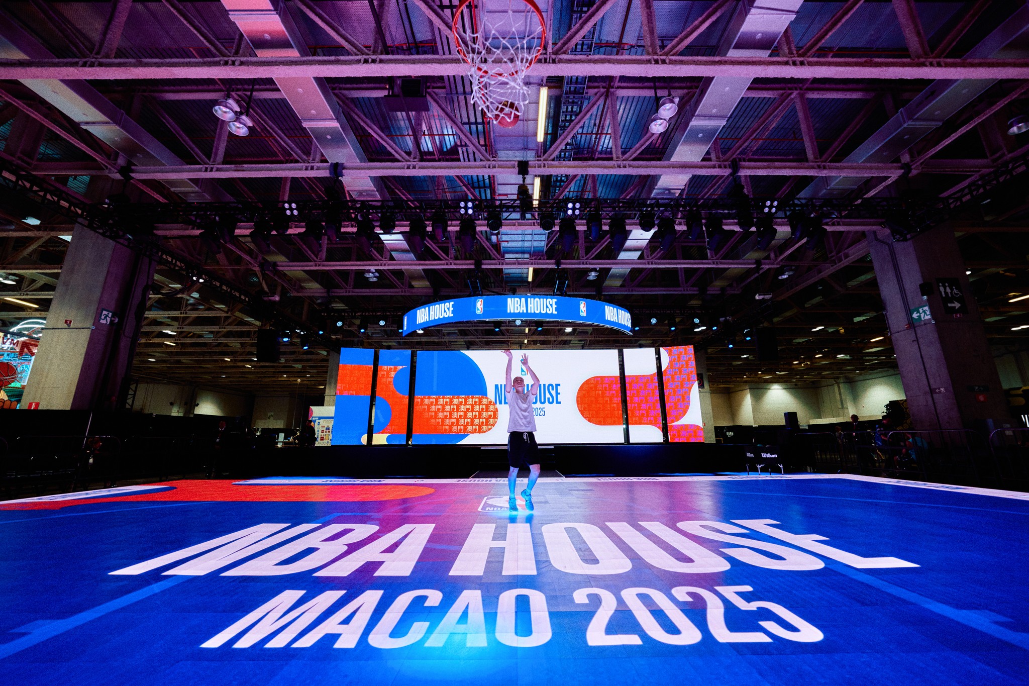 For NBA HOUSE 2025 in Macao, DigiCourt is our answer to these questions. Made up of 200 square meters of interactive floor LED screens and even more vertical LED screens, the DigiCourt is an ambitious exploration of how the sport of basketball can be augmented with cutting edge technology. From an iPad app, players can select numerous games to play on DigiCourt, accompanied by interactive graphics and sounds. During breaks, DIgiCourt can be converted to a dynamic event venue in a single button press, hosting NBA legends, pop cultural icons and the best international brands in the world.